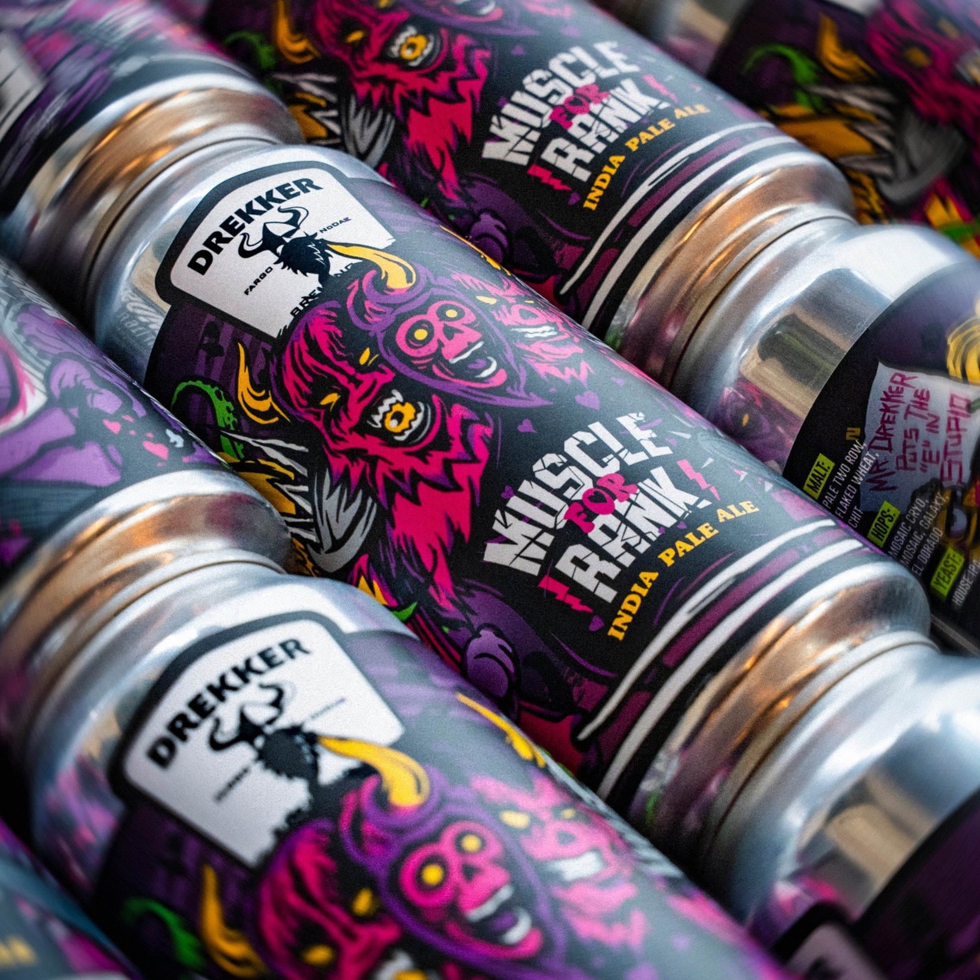 Description: Bursting with Mosaic Cryo, Mosaic, Galaxy and El Dorado hops, Muscle for Rank is a brand-new IPA that hits you with a tidal wave of juicy mango and passionfruit, with a citrusy punch. But the real treasure is a strong candy peach flavor, a sweet reward that lingers long after each sip.